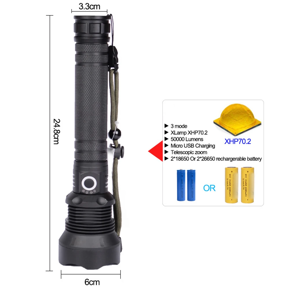 January 28, 2020 LED flashlight Sale Offer for Rechargeable Super Bright Flashlight Outdoor XHP70 LED Torch Tactical Zoomable Military FlashlightW Best Chance of Rechargeable Super Bright Flashlight Outdoor XHP70 LED Torch Tactical Zoomable Military FlashlightW If You want to buy Re...