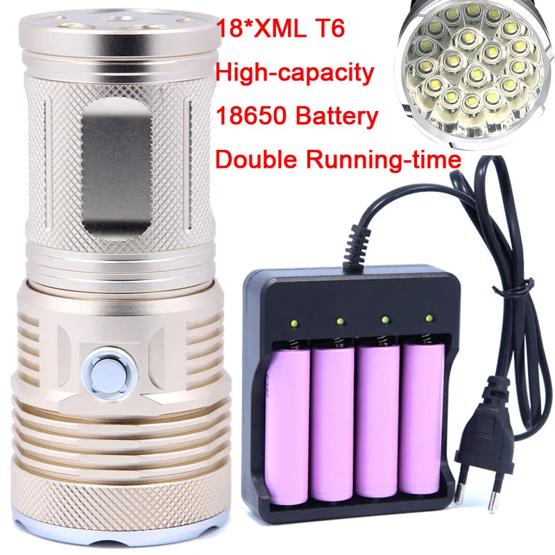 Buy 2018 New 40000LM 18 x XM-L T6 LED 3 Modes Flashlight Torch 4 x 18650 Hunting Lamp Super bright High Right Here and Right Now, Because before price is changed you will just pay for US $33.60, not in Reguler Price at US $33.60. Yap! This is I mean you will Save 0%